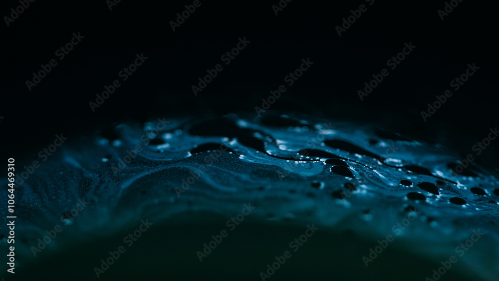 Clear water. Ruined hole. Set of caves in pure transparent crushed bright ice with cracks on modern art black darkened background.