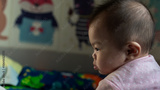 Portrait image of happy local lifestyle Asian Chinese baby girl on bed