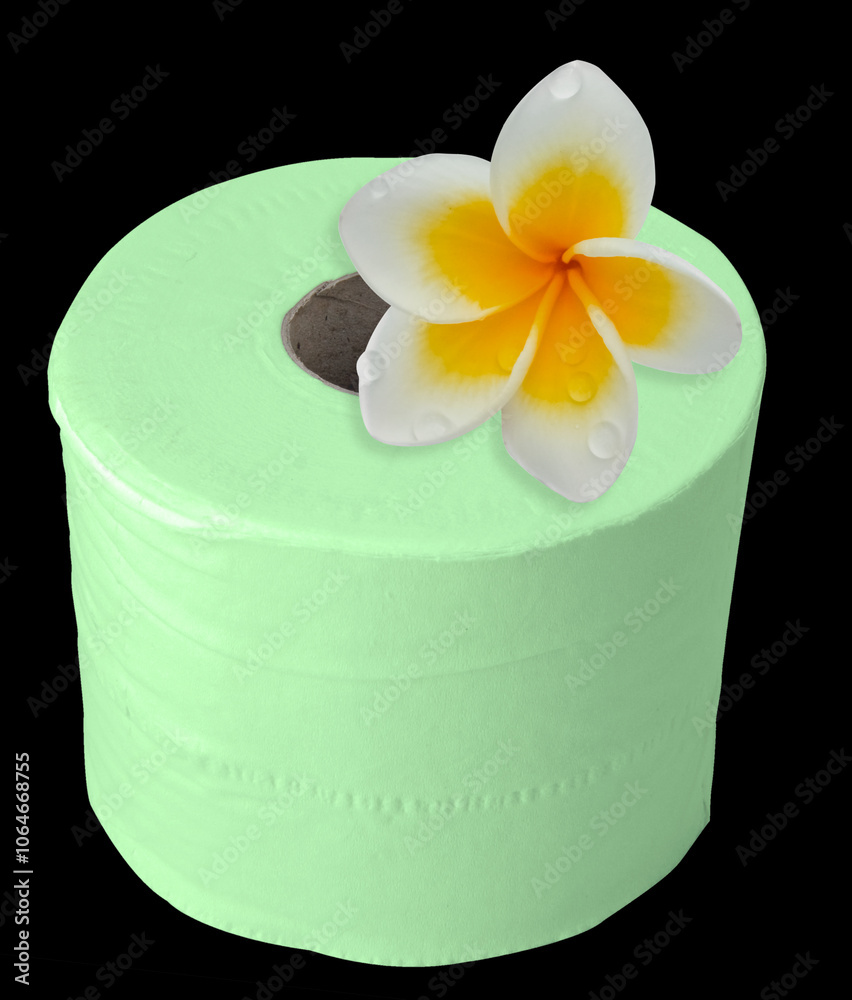 Fleur de frangipanier sur rouleau de papier hygiénique
