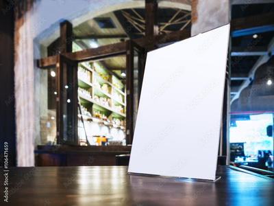 Mock up Menu frame on Table in Bar Restaurant cafe Interior Background