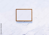 Blank Wooden Photo Frame on white textured wall Background