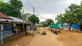 Tribal houses on the hillside. Bandarban Hills is a tourist spot in Bangladesh. The houses of the mountain dwellers.