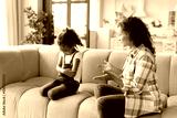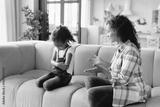 Misunderstanding between african mother and daughter. Mom crying scolding a girl for bad school marks, fault, misbehavior. Family problems. Maternity leave. PMS