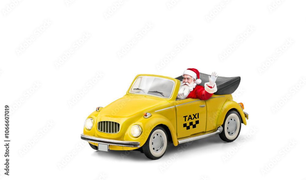 Santa Claus in a Bright Yellow Taxi Spreading Holiday Cheer on Wheels All Around