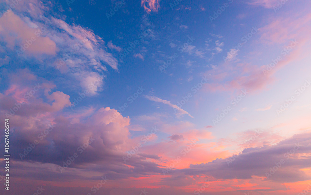 Clouds and sky in the morning,Beautiful of luxury soft gradient orange gold clouds and sunlight on the blue sky perfect for the background, take in everning,Twilight