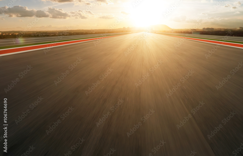 Motion blurred racetrack,golden hour