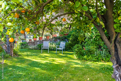 Relaxing in beautiful garden with Chairs