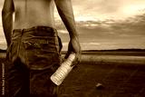 Man holding a bottle of water land to the ground dry cracked