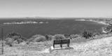 View from a bench on Arillas Bay with turquoise sea panorama on Corfu island in Greece