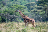 Giraffe is standing among the trees, gazing, Lake Mburo National Park, Uganda
