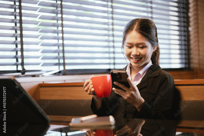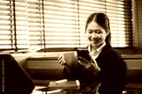 Asian businesswoman relaxing in a modern office