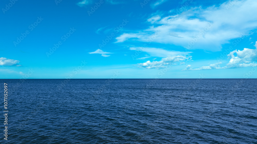 Nature of the beach and sea Summer with sunshine, sandy beaches, clear blue waters sparkling against the blue sky. On an island with good ecology and environment Background for summer vacation concept