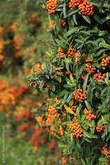 Pyracantha koidzumii commonly known as Formosa firethorn or Taiwan firethorn with many orange berries