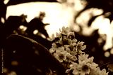 Close-up of apis mellifera on Eriobotrya japonica tree in bloom. Honey bees on white flowers of Loquat tree also called Japanese medlar