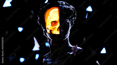 Seamless Loop Glowing Skull Sculpture