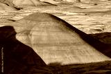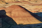 Golden hour at the Painted Hills, dramatic layers of the nature geological formation.