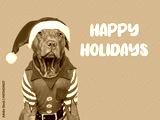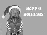 Happy Holidays. Cute dog and New Year's costume. Close-up, indoors. Day light, studio shot. Isolated. Congratulations for family, relatives, loved ones, friends and colleagues. Pet care concept