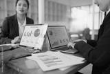 business people working together, financial advisory services concept. Business teamwork and working on digital laptop computer with advisor showing plan of investment to clients at table office,