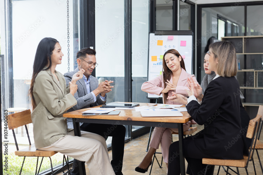 Team of Asian business people and working together in office, Startup projects and business presentation at meeting room.