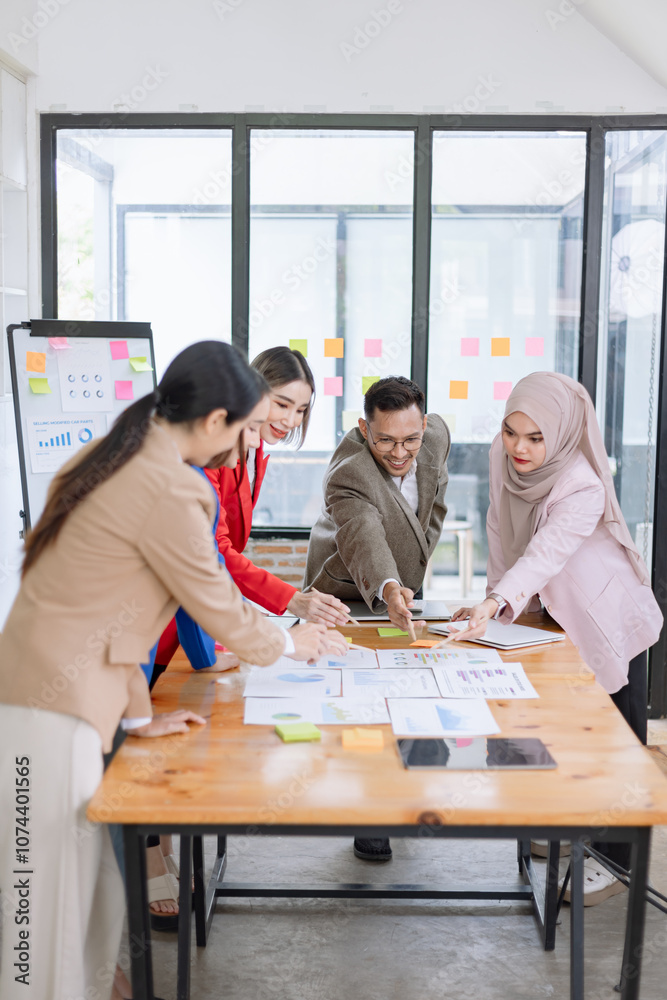 Team of asian business working with finances analysis report meeting in office, business financing, accounting banking, Business teamwork, Team of creative asian business meeting and business planning