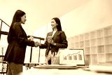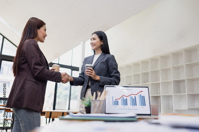 Asian businesswoman making handshake with partner in meeting room, Greeting and corporate business handshake,