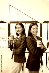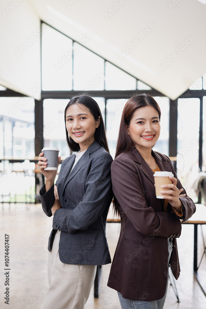 Portrait of a person, Two asian businesswoman standing with arms crossed in office.
