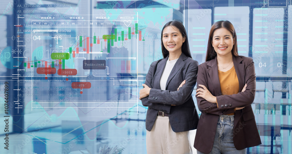 business people in a meeting, Two asian businesswoman working with analysis data investment plan, Business startup and marketing presentation,