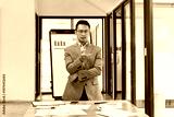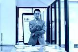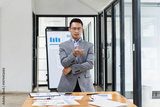 Happy asian businessman standing in office, Excited male person, Employee in achievement,