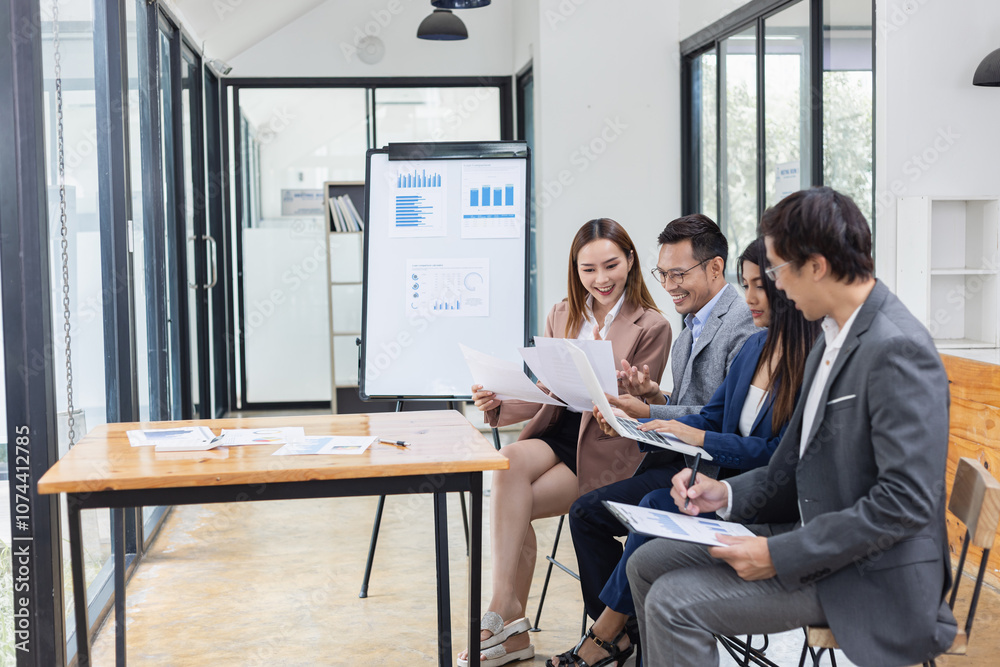 Asian business teamwork working with analysis report and advisor showing plan, Financial analysis and Marketing teamwork concept.