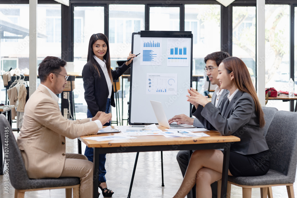 Asian business teamwork working with analysis report and advisor showing plan, Financial analysis and Marketing teamwork concept.