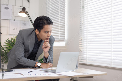 business people working with business financing accounting banking and laptop with finances analysis report at desk in office.