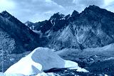 View of the Baltoro glacier and the ridge of Praqpa Kangri (7,134 meters), Marble Peak (6,256 meters) and Biange glacier from Gore 2 camp. Karakoram Mountains. Gilgit-Baltistan region. Pakistan. Asia.