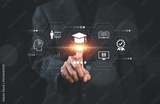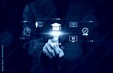 online education technology concept, E-learning education, internet lessons and online webinar, AI-enhanced learning with personalized courses.