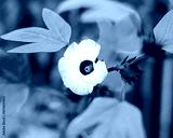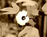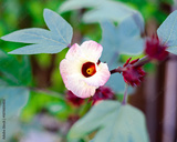 Close-up blossom Roselle calyx flower on branch of Hibiscus sabdariffa or Asian sour leaf at backyard garden in Dallas, Texas, homegrown flowering plant with edible leaves, calyces, and flowers