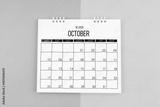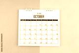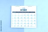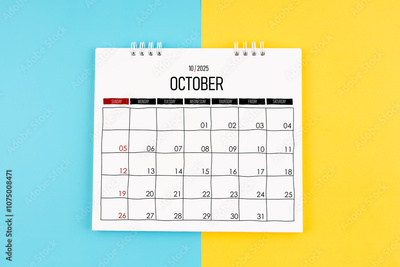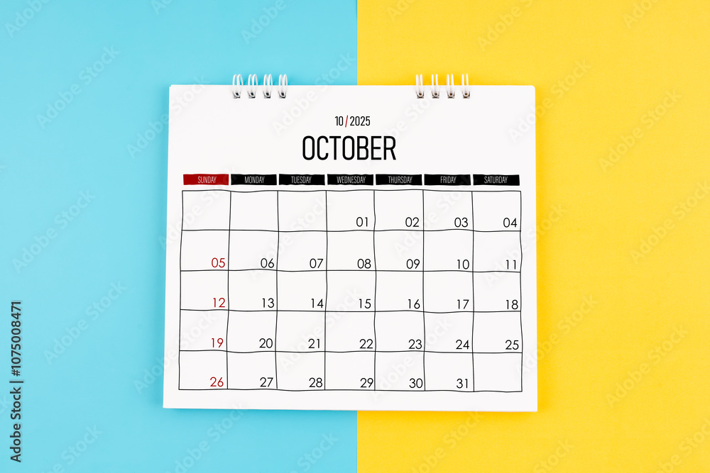 October 2025 calendar on blue and yellow color background.