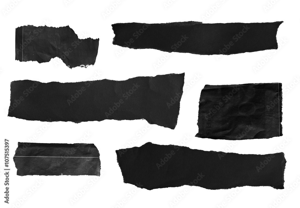 Old black paper isolated on white background with space for text