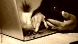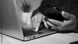 Businessman using smartphone and typing on laptop keyboard for cybersecurity and privacy