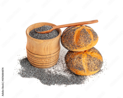Poppy Seed Bread Isolated, Kaiser Roll, Seeds Breakfast Bun, Poppyseed Round Bagel, Poppy Seed Bun
