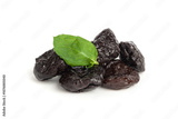 Dry Plums Isolated, Dried Black Fruits, Prune Group, Dry Plum Fruit on White Background