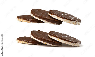 Puffed Rice Cake with Chocolate Isolated, Rice Diet Bread, Waffle, Cocoa Crackers