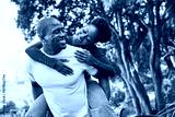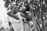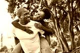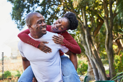 Joyful Couple Sharing a Playful Moment in the Park During a Sunny Day, Embracing Happiness and Love