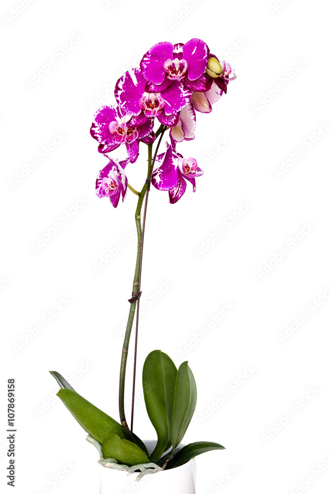 Blooming Pink Orchids in a Pot