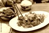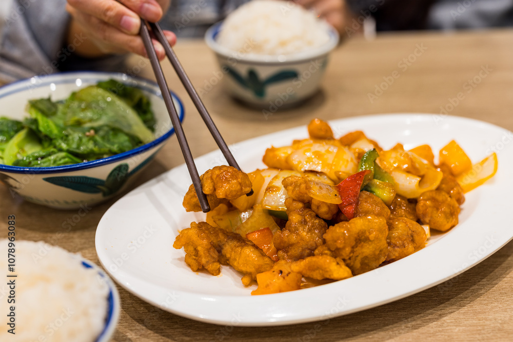 Cantonese style cuisine sweet and sour pork in the restaurant