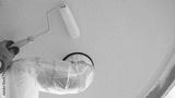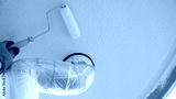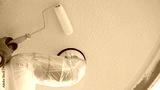 外壁塗装|排水管を養生して外壁(軒天井)を塗装する作業員