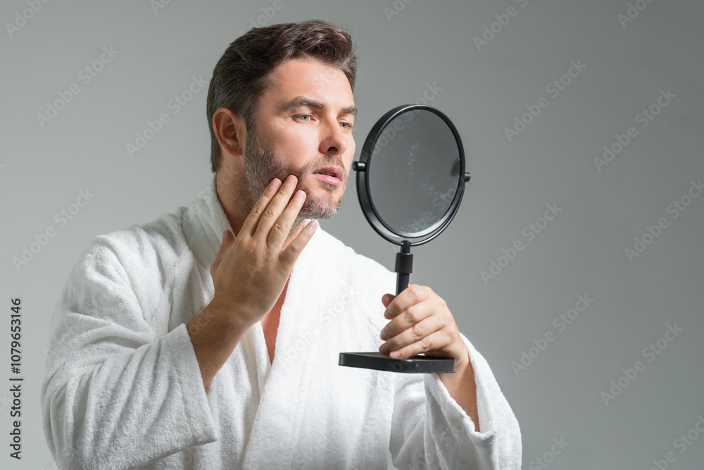 Beauty face portrait of a beautiful man applying face cream. Skincare cream for man. Mask, skin lifting and anti-aging effect. Beauty male face concept. Skincare and aging. Face cosmetic.