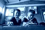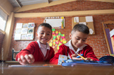 Two children in uniform at school