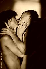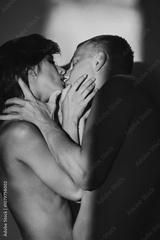 The kiss. Romantic lovers kissing. Tender kiss. Man kissing a woman. Kissed lovers. Studio portrait of kissing couple. Sexy young couple kissing each other. Relationship bonding. Couple in love