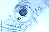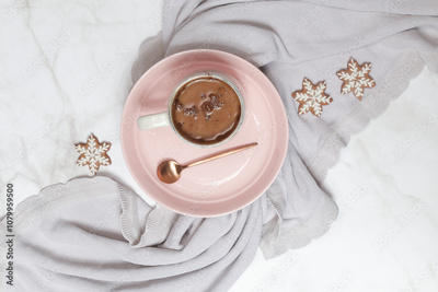 Christmas gingerbread cookies and chocolate milk mug, concept of winter holidays desserts and decoration