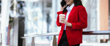 Asian businesswoman using a digital tablet working in the city