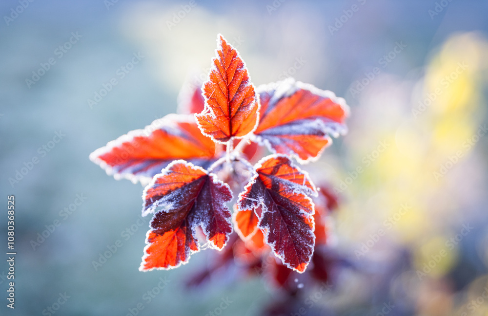 Plants frozen with frost after the first autumn frost in the morning